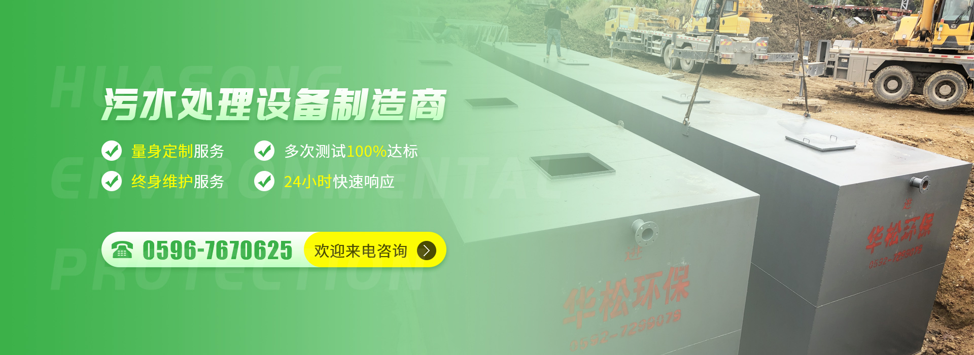 ??廈門市華松環保設備有限公司(福建省華松環保科技有限公司)是一家專業從事污水處理設備的研發、設計、制造、施工為一體的環保設備高新科技企業。公司擁有兩個生產基地廈門和漳州,華松環保有雄厚的技術實力聯合多家學府環保學院研發機構,建立開放的科技合作與技術創新體系。現已研發生產出多系列的環保污水設備產品:玻璃鋼機械纏繞化糞池、一體化GRP預制泵站/雨水回收系統、一體化污水處理設備、自動不銹鋼隔油器/玻璃鋼隔油池、一體化FRP儲罐、玻璃鋼噴淋塔、玻璃鋼夾砂管道、油水油煙分離凈化設備等系列產品。產品暢銷國內外,廣范應用于市政、生活污水、食品、醫藥、陶瓷、石材、化工、印染、電鍍、釀酒等污水處理設備領域,公司以高質量的產品和服務贏得了廣大客戶的高度認可和良好的市場信譽。